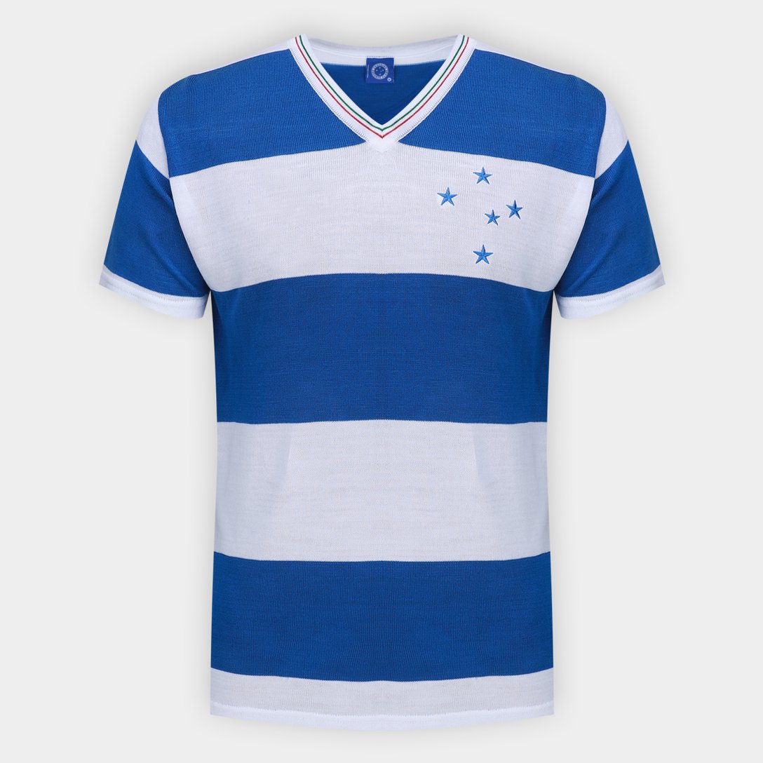 Camiseta Cruzeiro Retrô Masculina - Azul+Branco